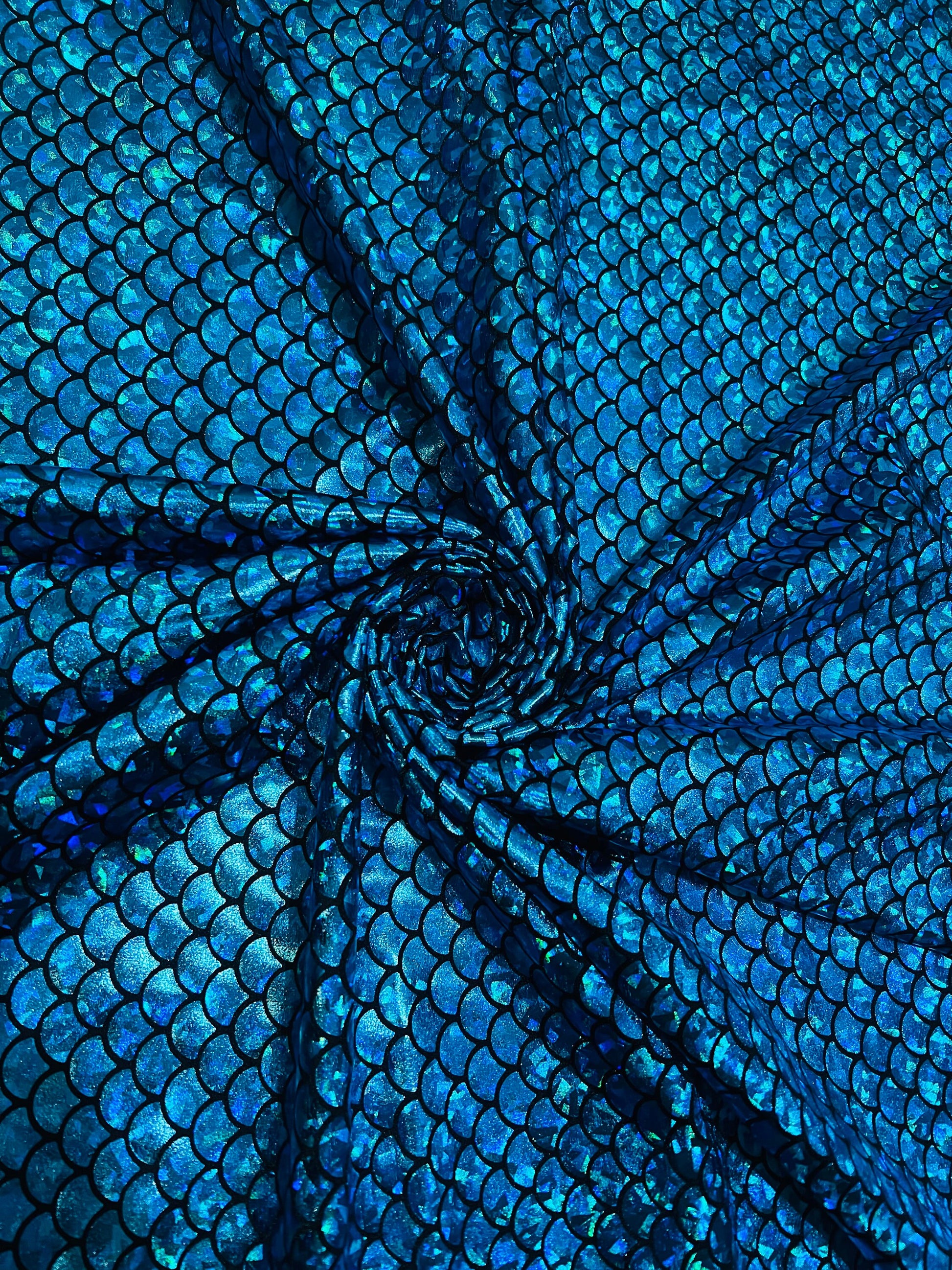 Hologram and iridescent mermaid scales print on nylon spandex 4-way stretch 58/60”Sold by the YD.Ships worldwide from Los Angeles California