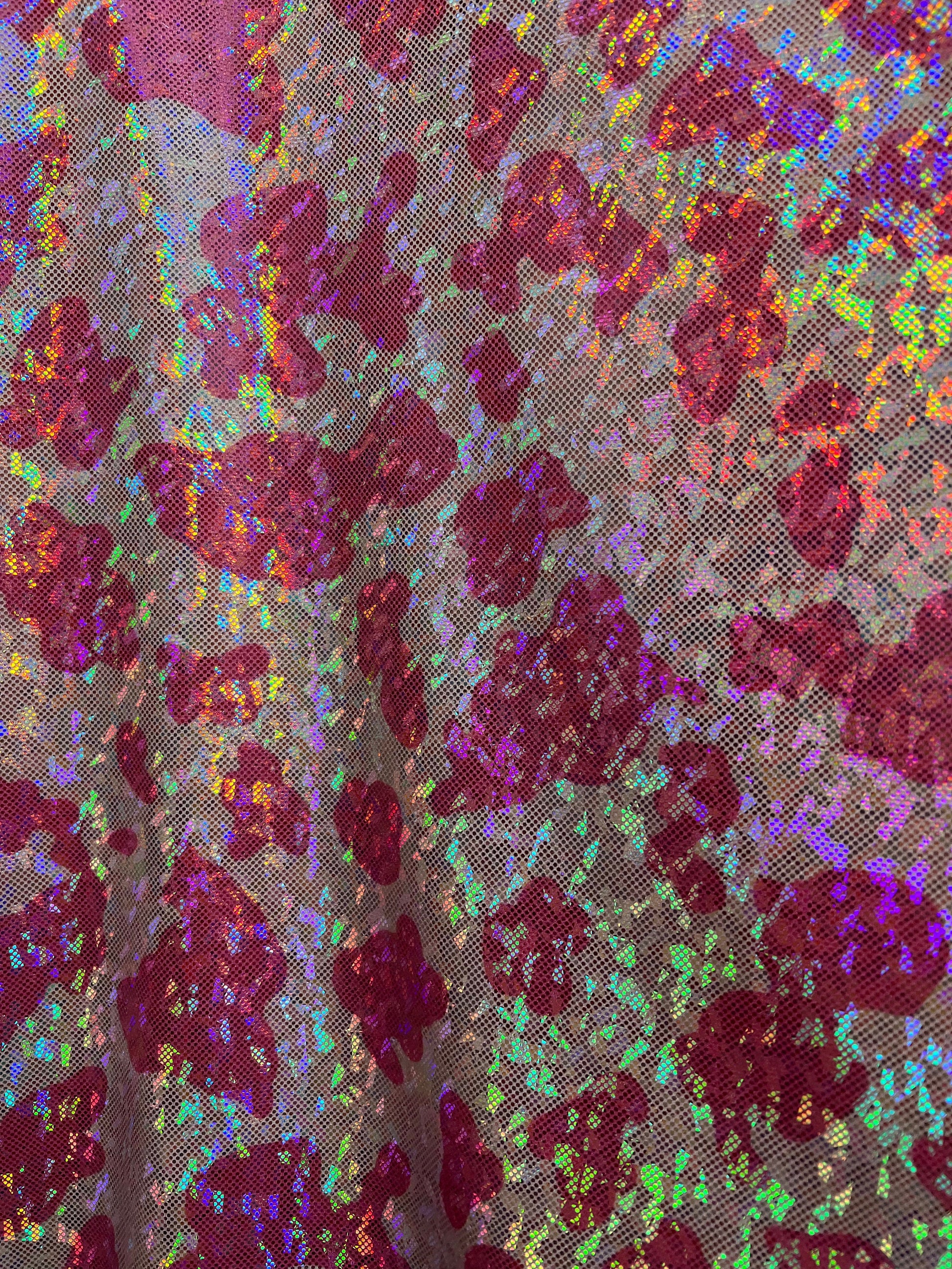 New Modern Cow design print on hologram shattered glass nylon spandex metallic 4-way stretch 58/60”sold by the YD.Ships worldwide from LA
