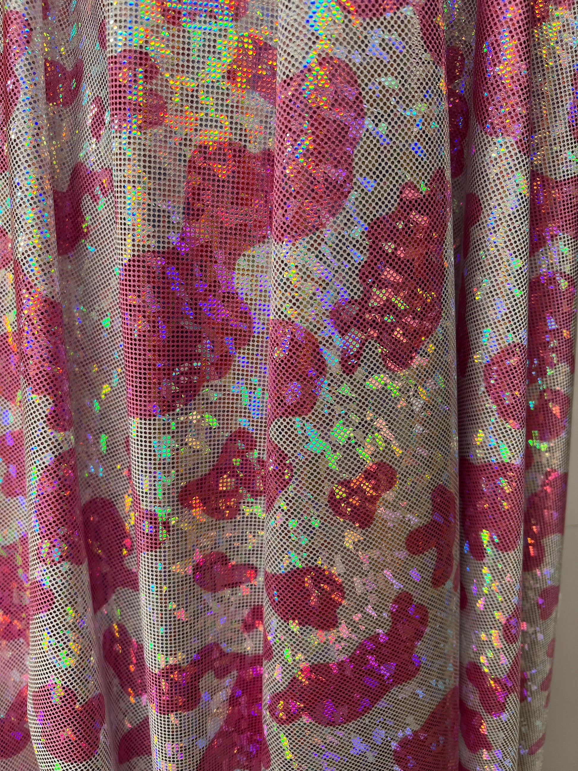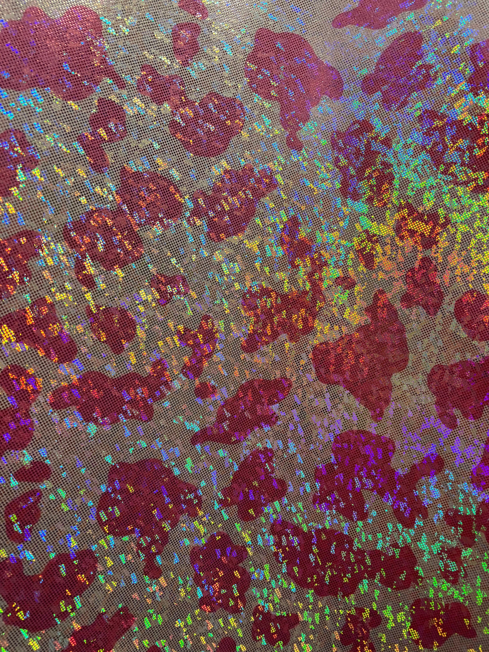 New Modern Cow design print on hologram shattered glass nylon spandex metallic 4-way stretch 58/60”sold by the YD.Ships worldwide from Los Angeles California USA.