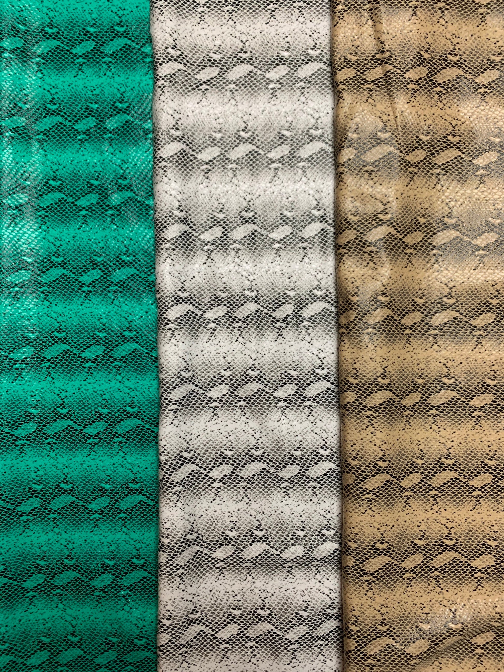 Skin snake pattern design print on the best quality nylon spandex with clear foil 4-way stretch 58/60”sold by the YD.ships worldwide from Los Angeles CA USA